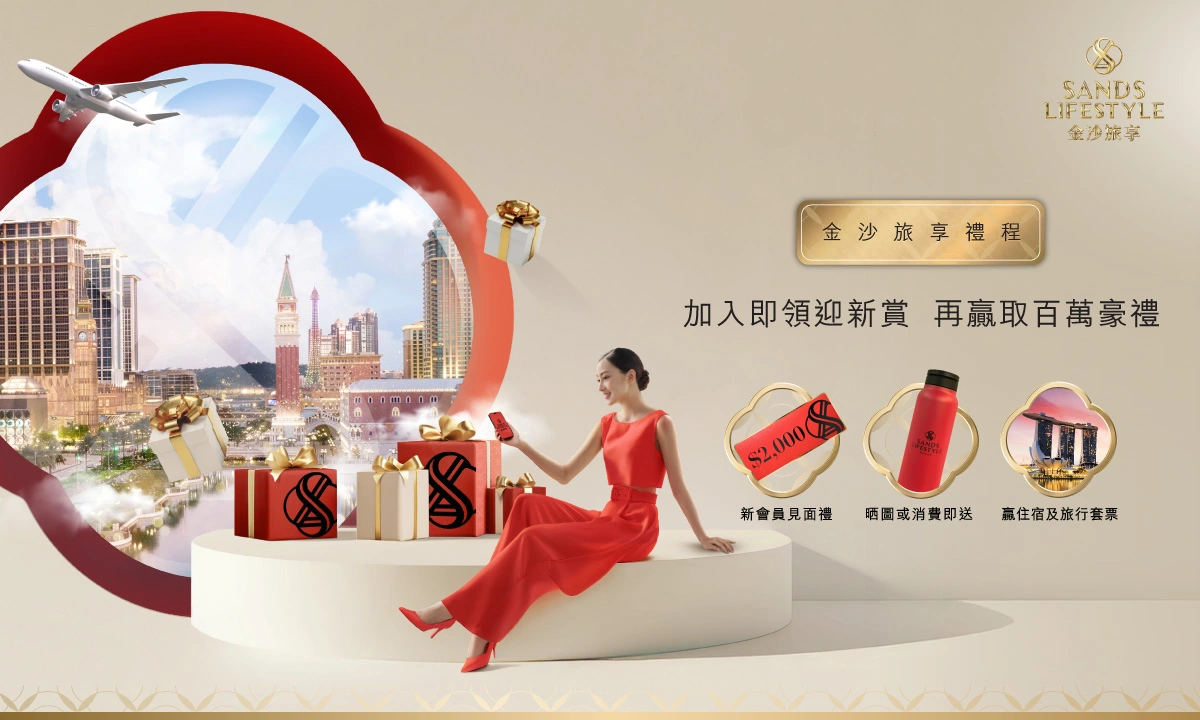 由2026年3月19日起至6月21日,加入成爲金沙旅享會員,即可贏取限量版熱門禮品,完成任務更有機會解鎖高達100萬獎賞!