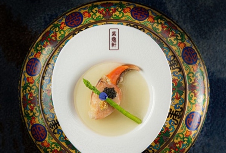青花椒冷鹵活遼參、指橙紅酒鵝肝、金箔魚子醬乳豬件——紫逸軒的三道頭盤組合,以卓越的粵菜風味與精湛廚藝,為你的米芝蓮星級味蕾之旅揭開奢華序幕。